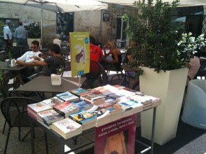 Boekenwinkels doen hier meer dan boeken verkopen. Er hoort een terrasje bij. In de winkels wordt ook wijn verkocht. En op zaterdagmorgen leren kinderen er de taal-van-de-dieren. Boeken zijn nooit ver weg. Boeken zijn hier het leven.