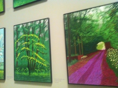 Waow gaat er door mijn hoofd. Deze krasse zeventiger heeft het nog helemaal in de vingers. Hockney keerde terug naar zijn geboortestreek Yorkshire en schildert er landschappen.