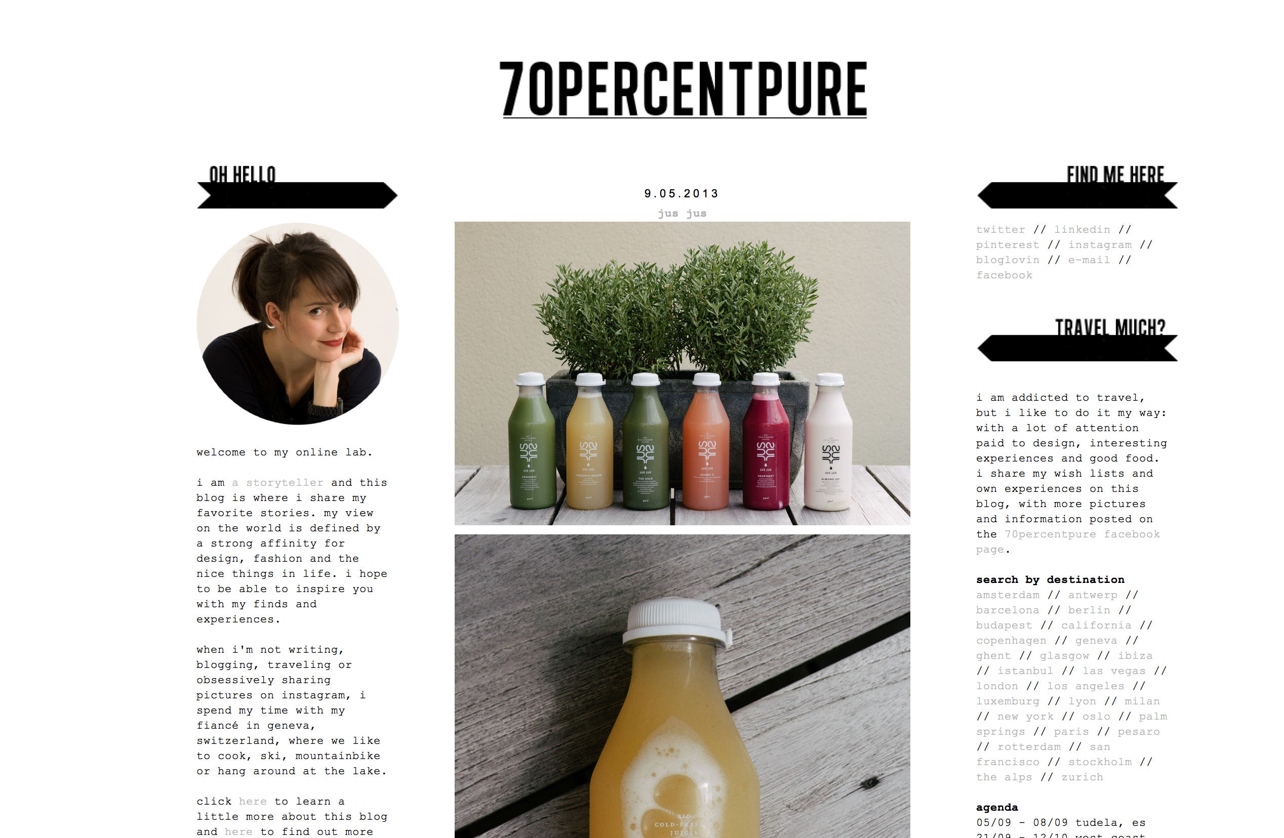 Stephanie Duval is trendwatcher en storyteller. Zo zijn er velen en toch lees ik haar blog 70percentpure zeer graag. Ze zit niet altijd op de hipste locaties – boring Genève, upperstif Zurich en unexplored Boedapest – maar ze weet er de coolest of places uit te kiezen.