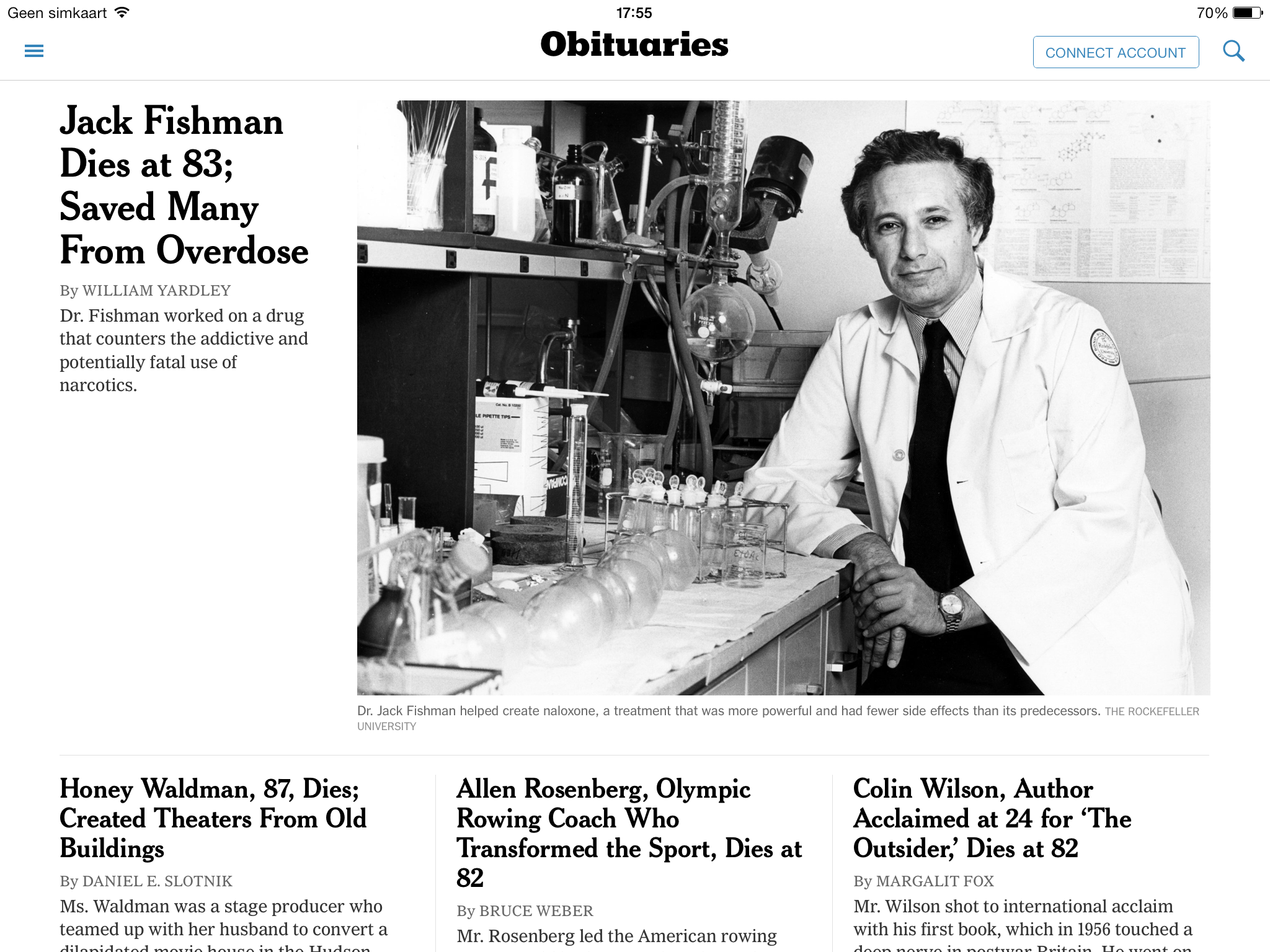 Babies krijgen geen afzonderlijk hoofdstuk in de krant. Dat brengt met bij de overlijdensberichten. Dat we langer leven, merk ik meteen. “Jack Fishman dies at 83; saved many from overdose”, “Honey Waldman, 87, dies; created theaters from old buildings”, “Allen Rosenberg, Olympic rowing coach who transformeer the sport, dies at 82”, “Colin Wilson, author acclaimed at 24 for “The Outsider” dies at 82″, …