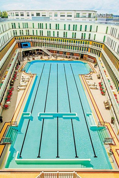 Molitor opende als zwembad in 1929 en was meer dan zestig jaar het meest populaire binnen- en buitenzwembad van Parijs. Er werden gala’s gehouden en de sfeer bleef al die tijd avant-garde art deco. Sinds de jaren ’90 was het onderhevig aan verval. Het sloot en werd een uitgelezen “stadskanker” met fantastische graffitti-kunst. Het gebouw werd een paar jaren geleden met de grond gelijk gemaakt omdat betonrot het complex weinig kansen gaf. Maar het werd helemaal heropgebouwd en ingekapseld in een hotel. Het resultaat is bijzonder geslaagd. 126 kamers die gebouwd werden rond het buitenzwembad dat hele jaar door – ja zelfs op 1 januari – toegankelijk is bij een temperatuur van 28 graden. Ik ben 2015 gezond gestart.