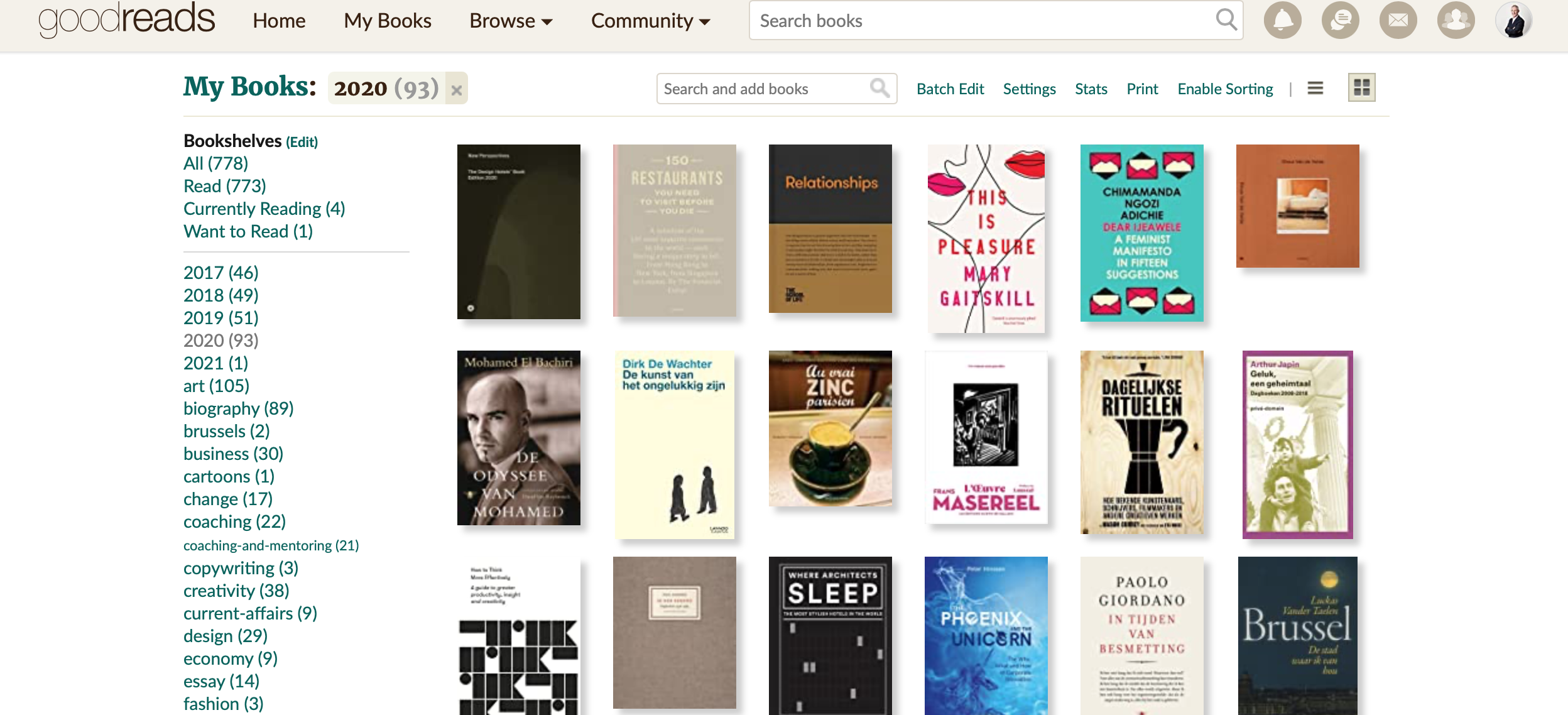 On average I read 50 books per year. Not all of them are thick pageturners. The number includes art catalogues and essays featuring as a small gift book on the shelf of my favourite book store, apart from the mainly Anglo-Saxon literature and management books that caught my attention when reading the book reviews in The New York Times or De Standaard.