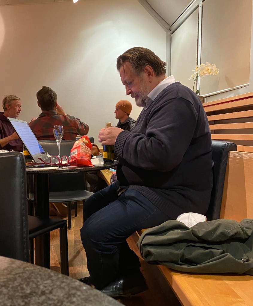 Last in Geneva I was sitting in front of this guy. Looking up from my computer I stole this picture, which was telling so much. The lounge was closing at 19.00 but at 18.55 he made sure he had some reserves …
