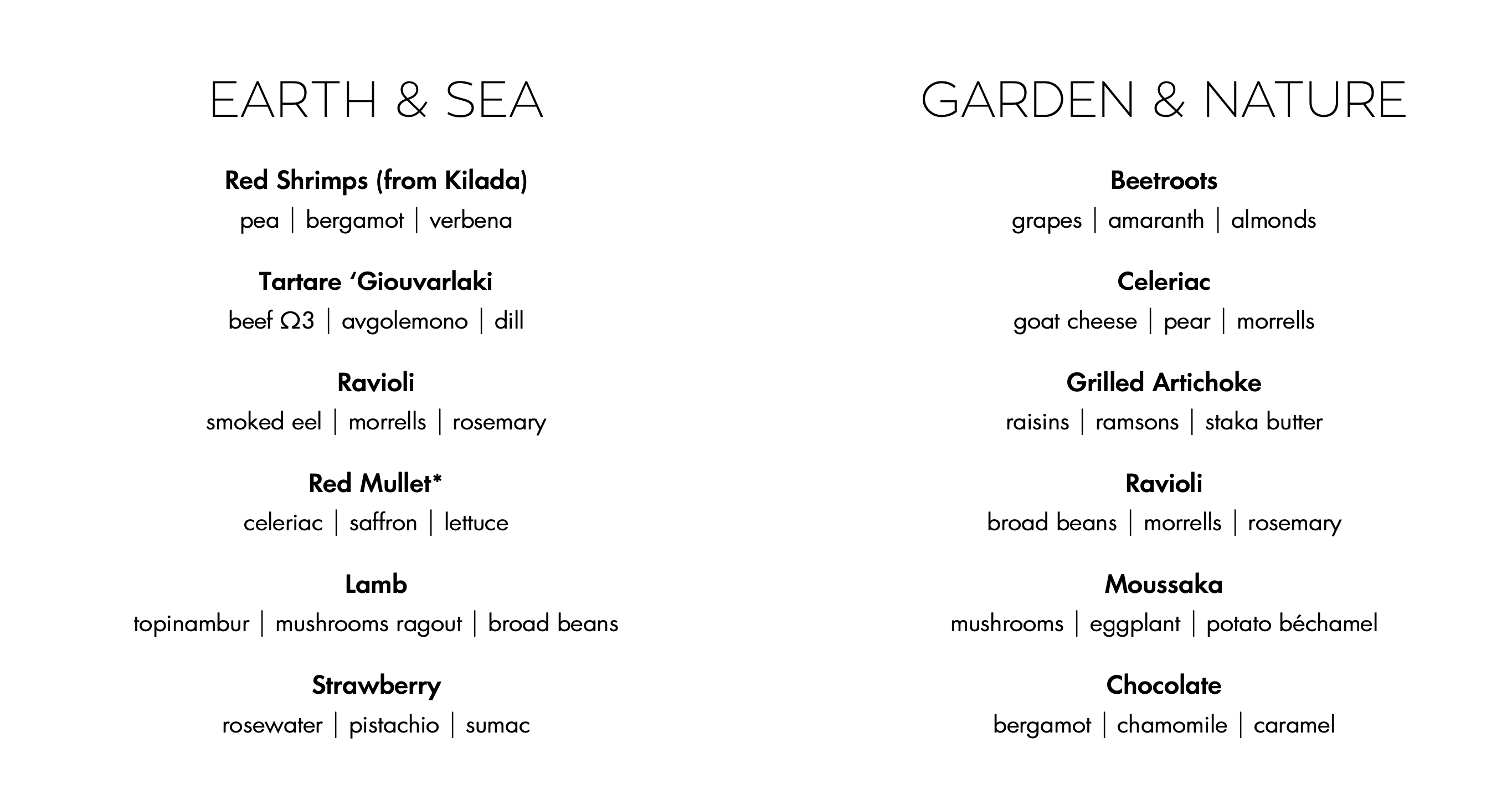 Chef Tasos Mantis has nurtured a strong bond with nature. He is immersed in sustainable cooking and herbalism, elevating the richness of the Greek land. His father is looking after the Tasos’ garden, just one hour from Athens.